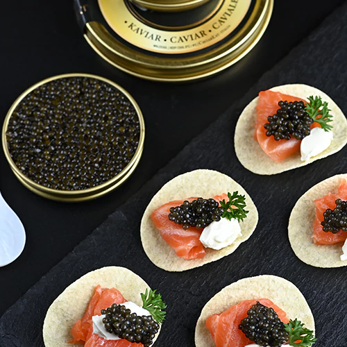 Royal Oscietra from CaviarEat stands out for its refined and layered taste, combining subtle brininess with rich, nutty undertones. The pearls deliver a smooth, creamy burst on the palate, gradually unveiling notes that range from delicate sweetness to an elegant earthy finish. Sourced from the crossbreed of Acipenser Schrenckii and Huso Dauricus sturgeon, the caviar features golden to deep brown pearls with a signature creamy texture. Perfect for fine dining and special occasions, it enhances every dish with a touch of sophistication.