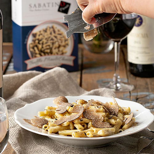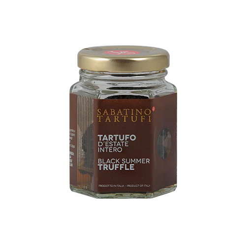 Luxurious whole truffles preserved with an aromatic brine. Mild and delicate earthy taste with a softer texture. The truffles range in size, averaging about 28-32 grams each.